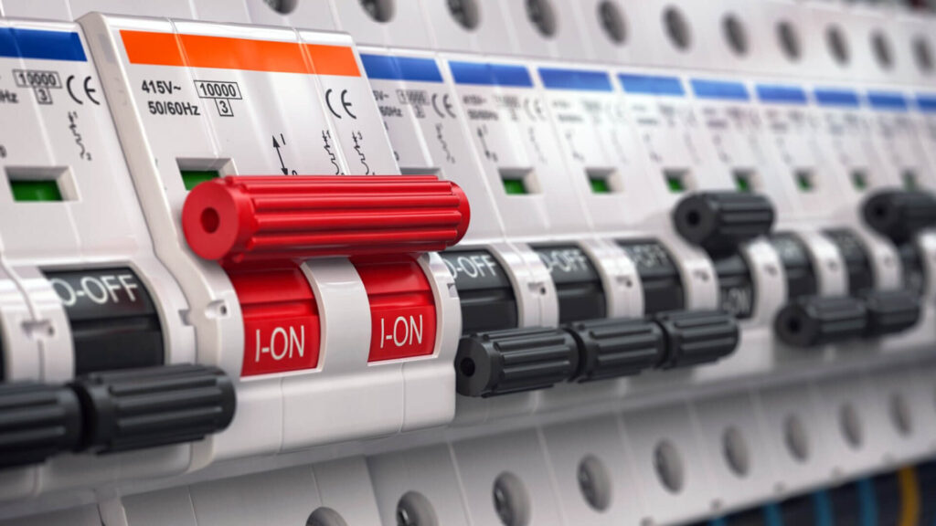 Residual Current Devices (RCDs) detect imbalances between live and neutral conductors. When a small fault occurs — such as moisture in sockets or a damaged cable — the RCD disconnects the circuit instantly to prevent electric shock.